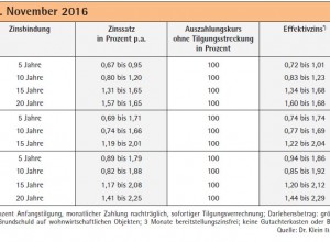 Realkredite: Konditionen Stand 3. November 2016 Quelle: Dr. Klein & Co. AG