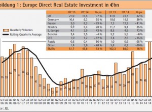 Abbildung 1: Europe Direct Real Estate Investment in EUR bn Source: JLL