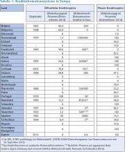 Tabelle 1: Kreditinformationssysteme in Europa